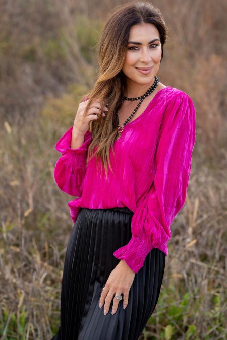 Velvety Cinched Sleeve Blouse