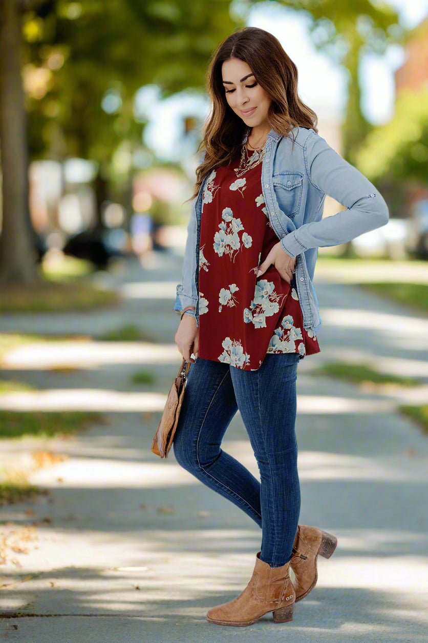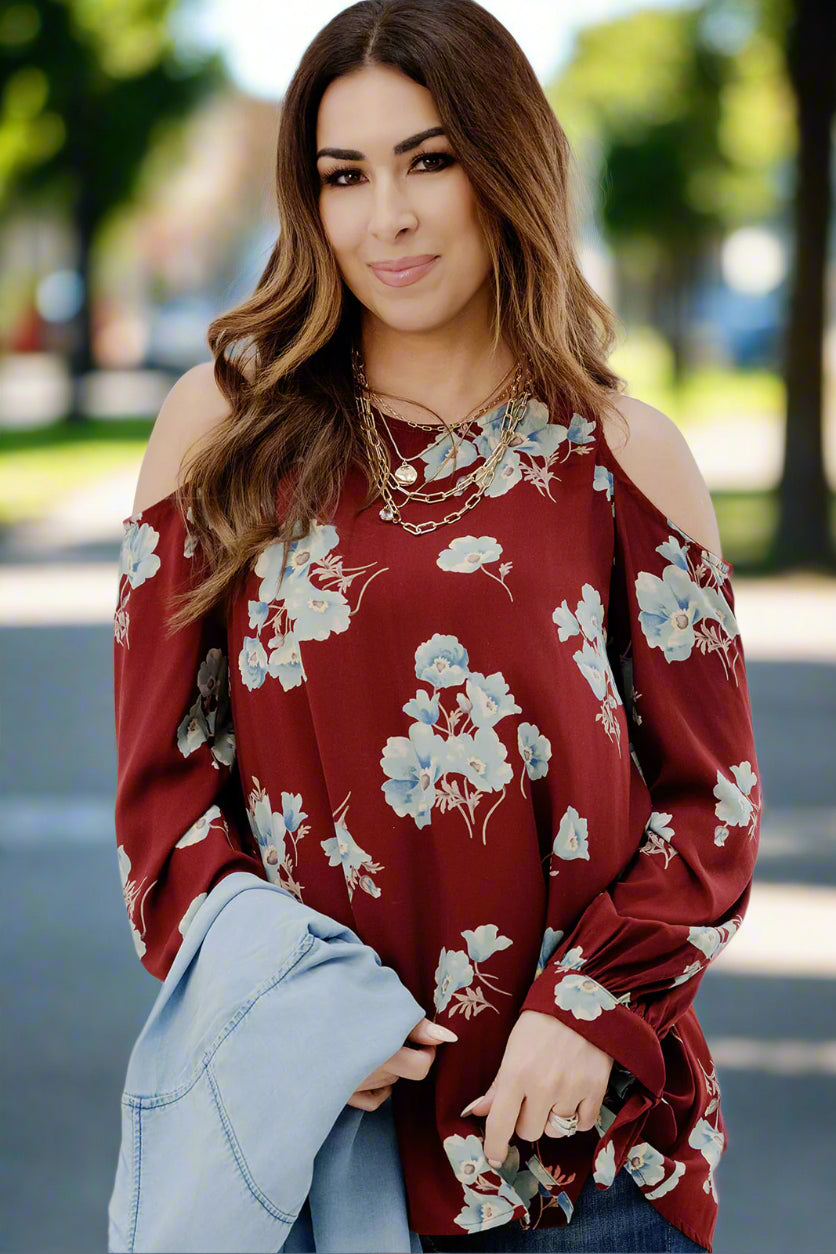 We’re swooning over this blouse! The flowy fit looks great on any body shape or size and the cold shoulder style and stunning floral print gives this a fun and flirty look! Pair with shorts in the warmer months or denim in the cooler! We love pairing with a bold colored pair of our Betsey’s Jeggings and your favorite accessories to complete the look!