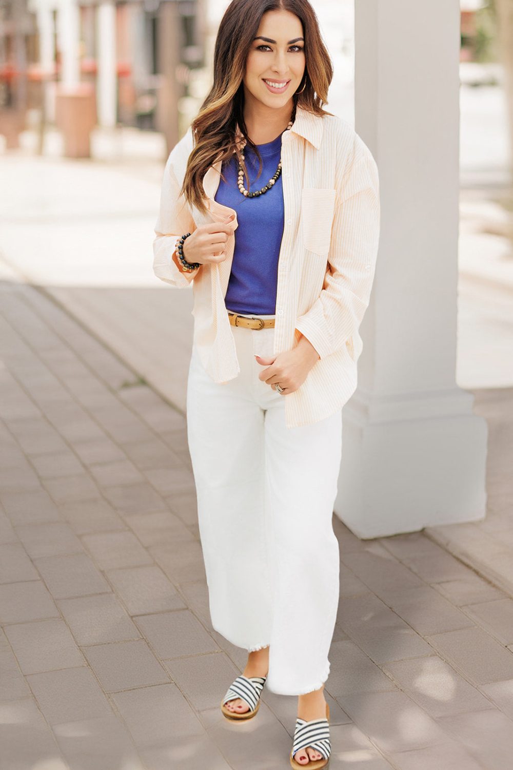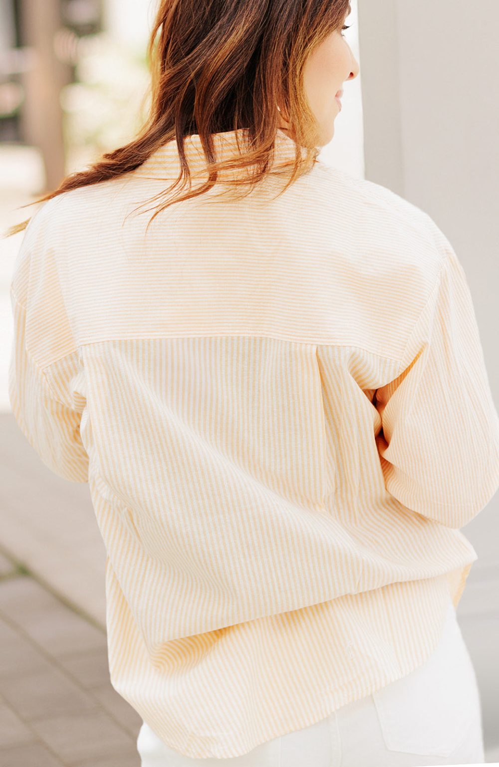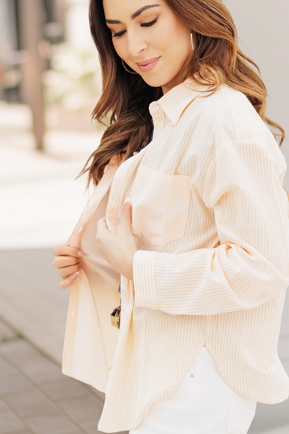 Simple and elegant describes this blouse perfectly. Button-up blouses are a classic, timeless piece. We love the mix of stripes and the lightweight material making this ideal for every season. Wear button up or leave this open over a basic or graphic tee!