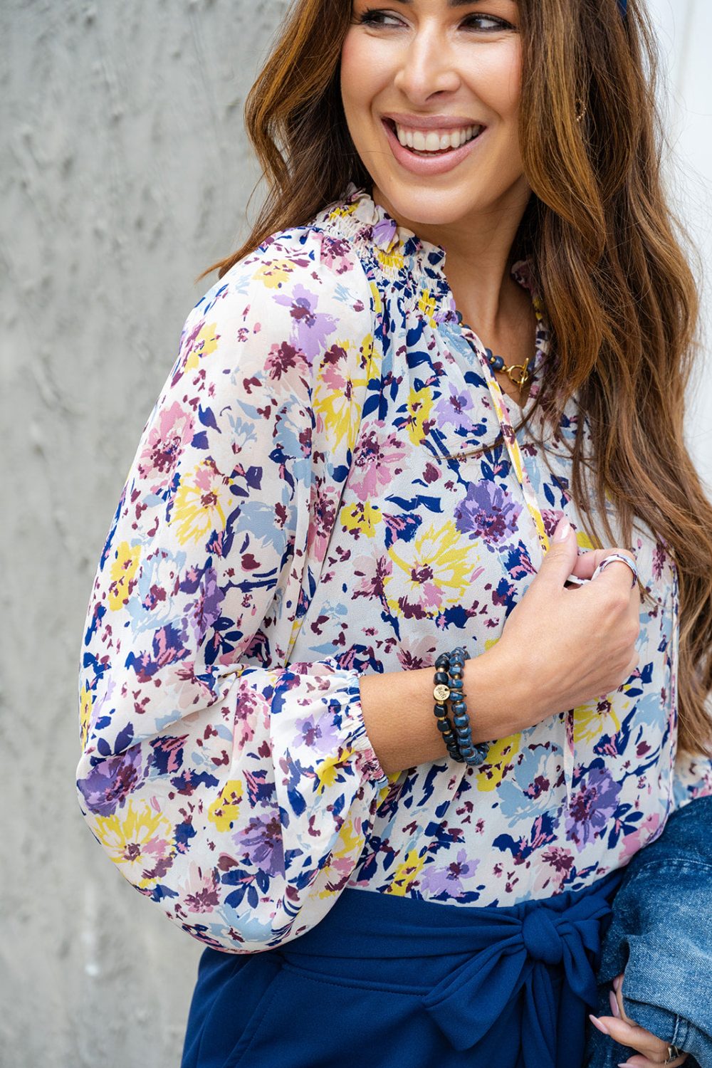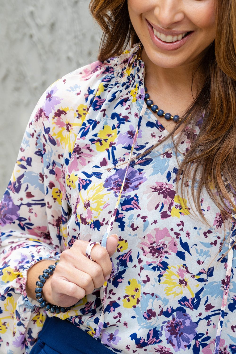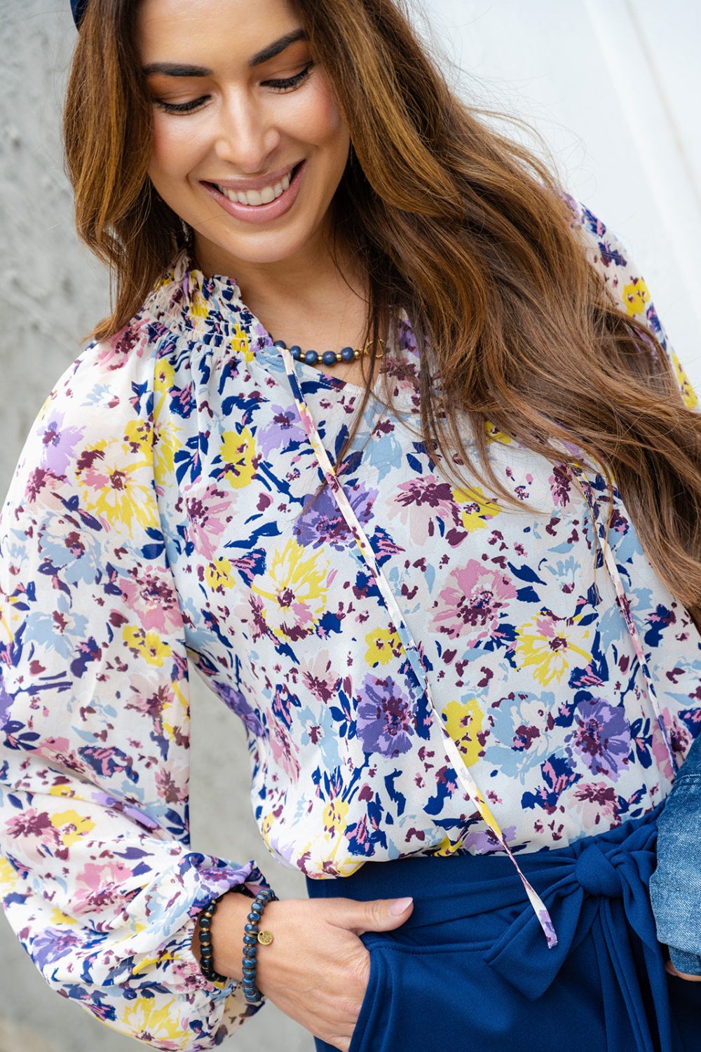 Love to look cute and fancy? This is the one for you! This cute floral blouse is an absolute dream! It has a cinch sleeve and a v-neck with a fun added tie, and looks great with jeans, a skirt, joggers, or your favorite denim! Just add your favorite accessories to make the look truly yours.